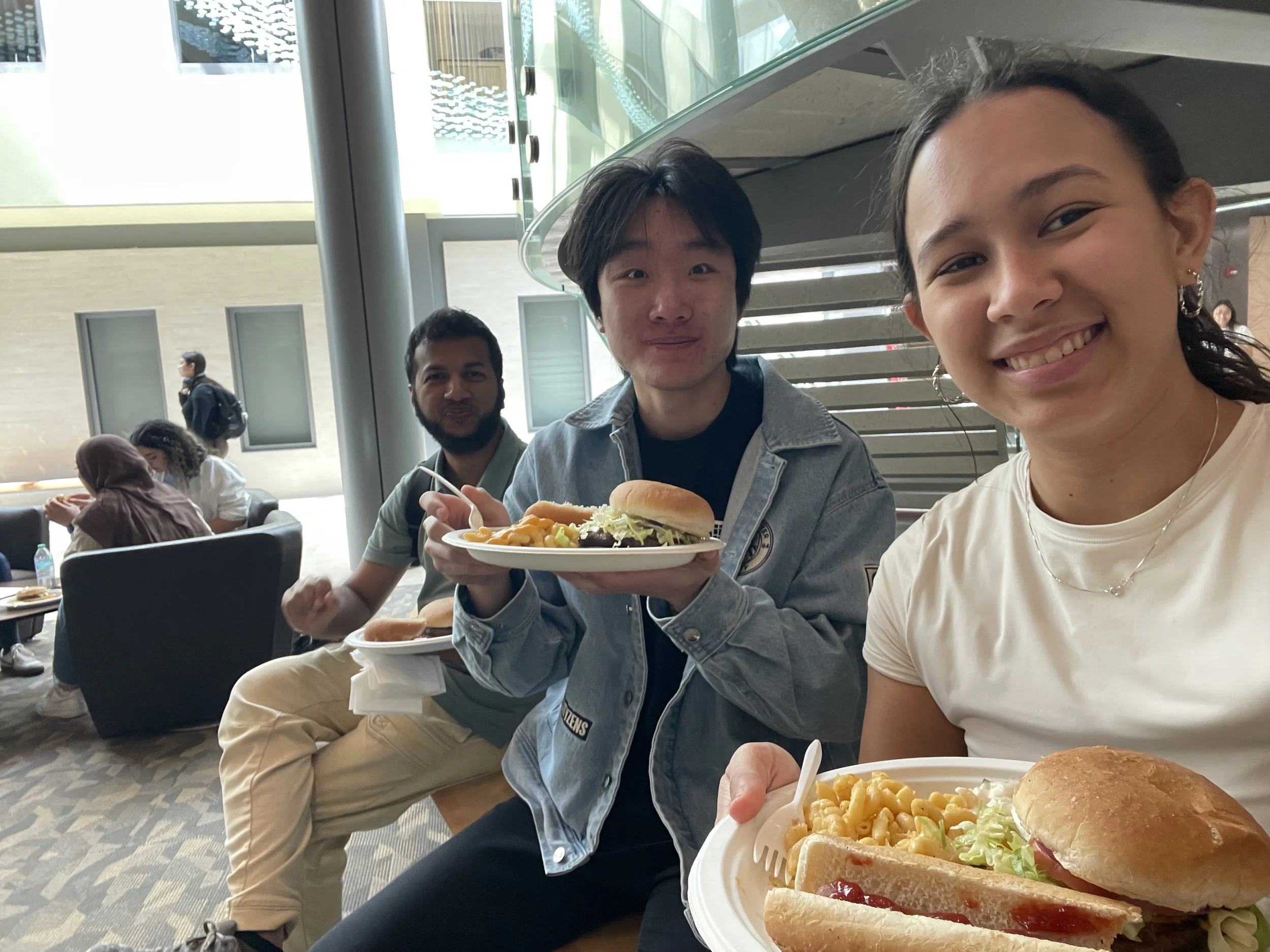 May 1, 2025: The graduate students enjoy free food at the EMSOP Wellness Week BBQ.